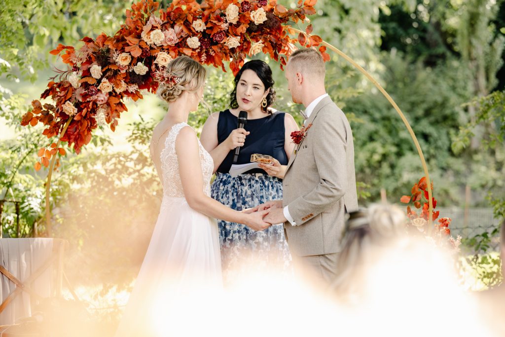 Am Tag euer Hochzeit bin ich rechtzeitig vor Ort, spreche letzte Details mit allen involvierten Personen ab und richte meine Anlage mit Mikrofon selbständig ein. Und dann gehts los – eure ganz persönliche Trauung beginnt!